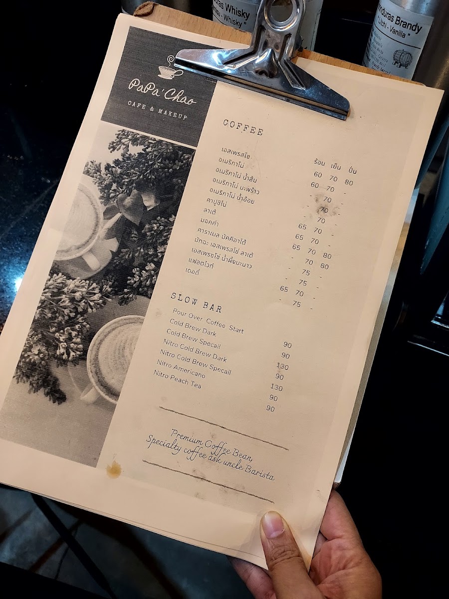 Papa Chao Café Coffee&Bake shop make up studio Menu